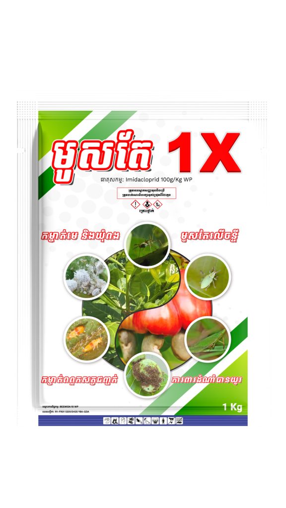មូសតែ 1X ជាថ្នាំមានលក្ខណៈប៉ះផ្ទាល់ បំពុល ស្រូប ឬជ្រាបចូលតាមស្លឹកដំណាំរហូតដល់ឫស។ ថ្នាំជំនាញកម្ចាត់ ទៅលើពពួកសត្វល្អិតជញ្ជក់ដូចជា មូសតែ ចៃស ស្រមើល ទ្រីប ដែលមានលើដំណាំស្វាយ ស្រូវ សណ្តែក ឪឡឹក និងស្វាយចន្ទី។ ថ្នាំមានប្រសិទ្ធភាពកម្ចាត់ទាំមេសត្វល្អិត កូនសត្វល្អិត ព្រមទាំងឃុំពងជាប់បានល្អ ការពារដំណាំបានយូរ។