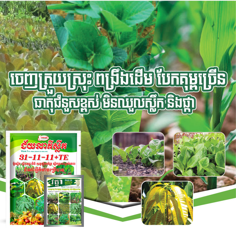 | បន្លែយកស្លឹក | – 7ថ្ងៃប្រើមួយដងរហូតដល់មុនពេលប្រមូលផល 10ថ្ងៃ |